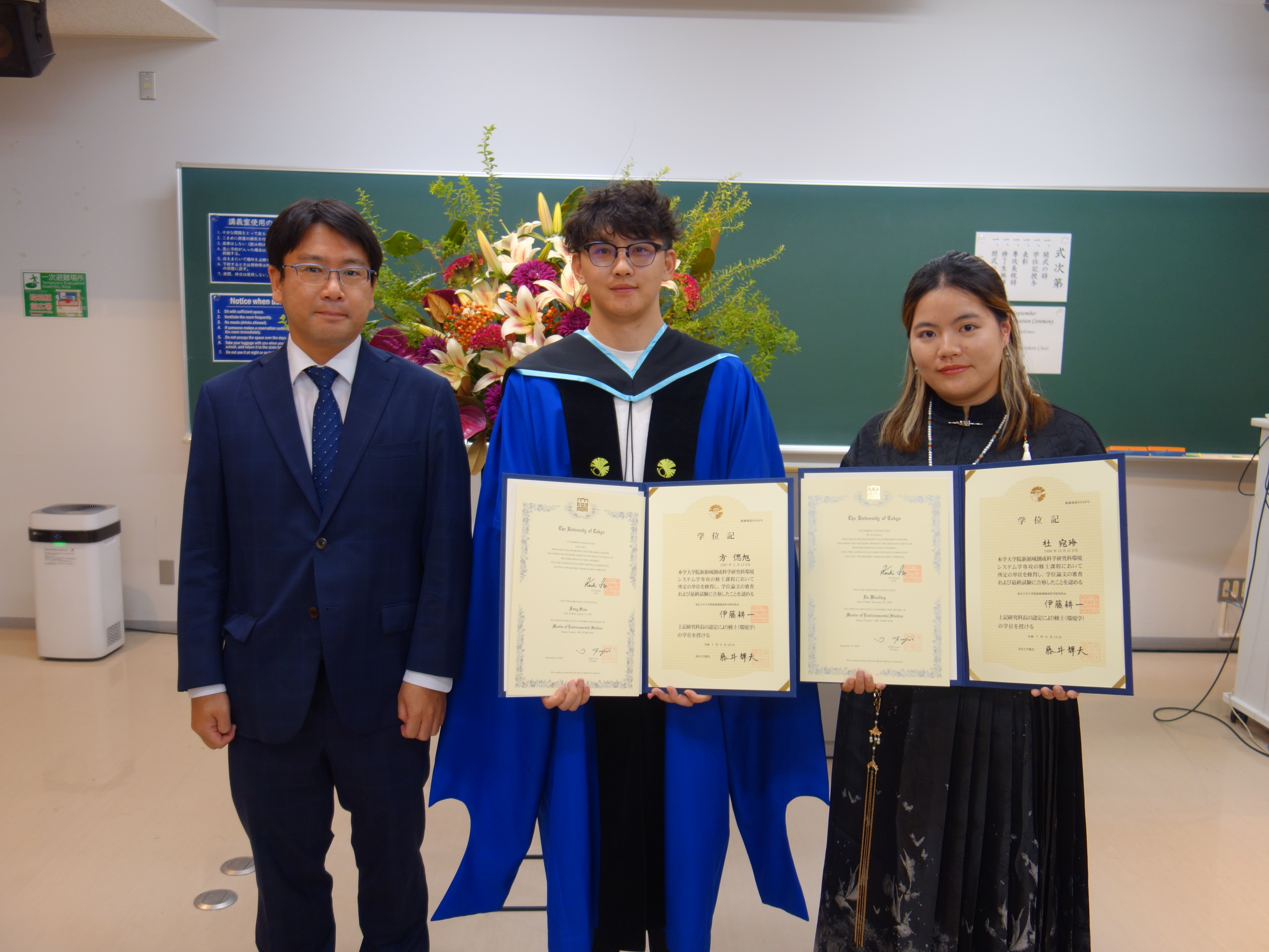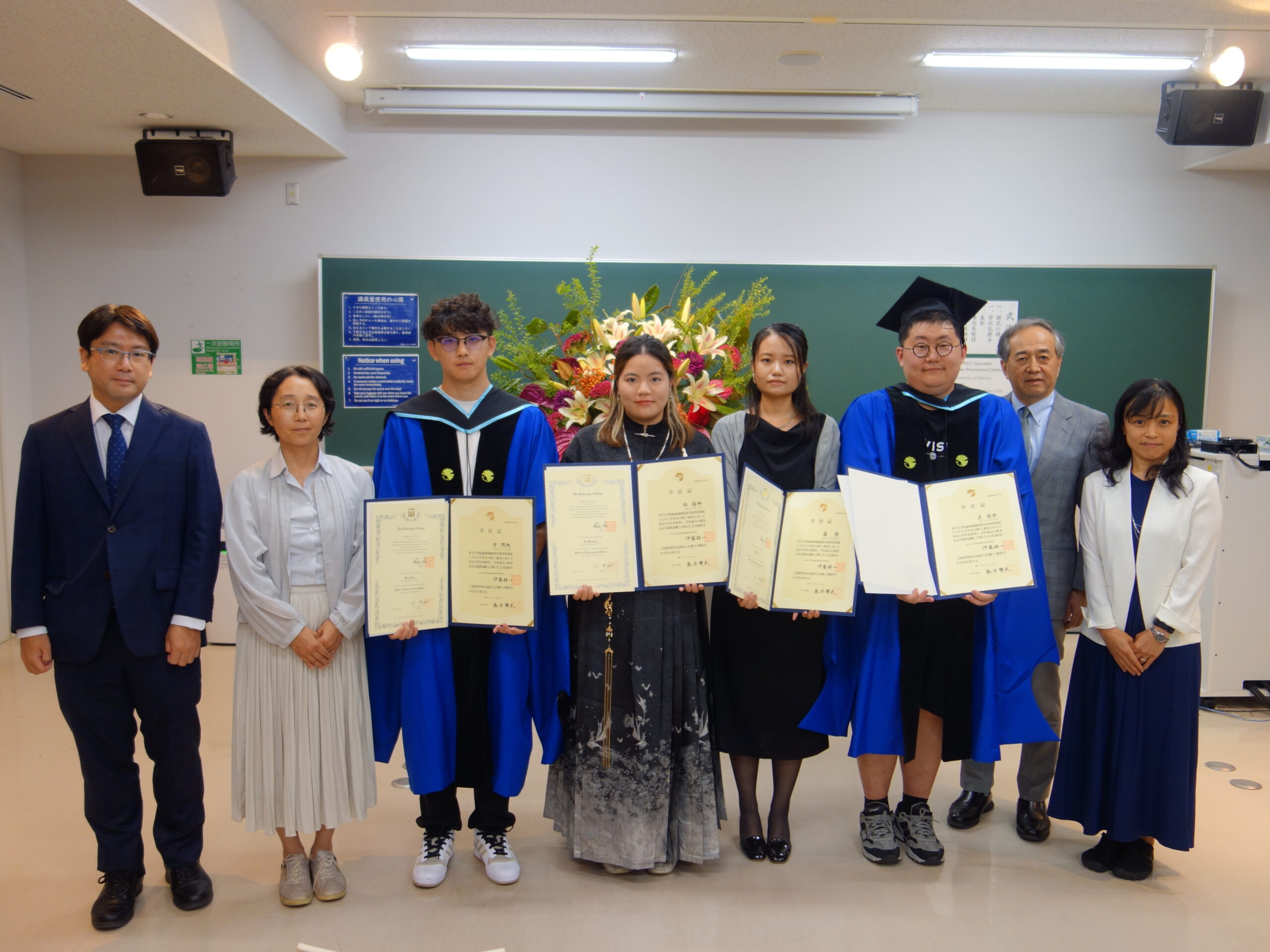 9月19日に、王さん、羅さん、方さん、杜さんが学位記授与式参加しました。 王さん、羅さん、方さん、杜さんご卒業おめでとうございます!これからのご活躍もお祈りしています! 投稿ナビゲーション 2025年度M2中間発表 化学工学会にて王 一琦さん、大島 義人先生、秋月 信先生、関 将太郎さん、瀬筒 はる香さんが賞を受賞しました